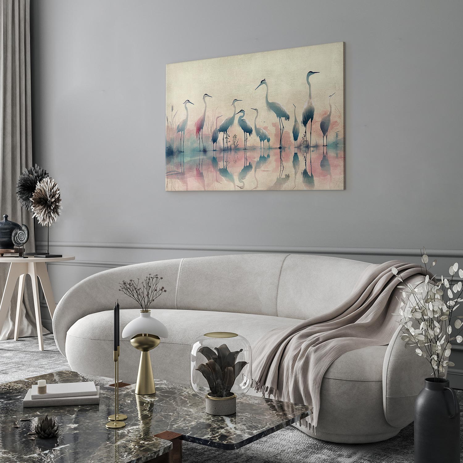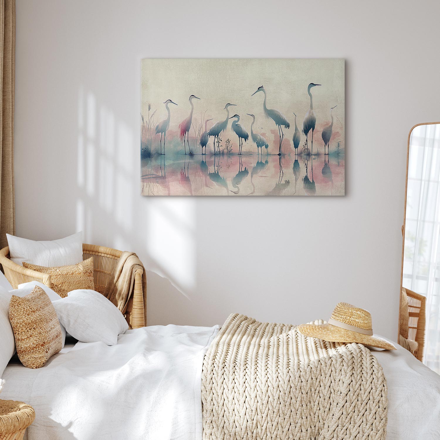 Unsere Bilder sind sicher und geruchsneutral und eignen sich daher ideal für Kinderzimmer. Die Größe wird Ihr Kind sicher beeindrucken! Bilder für Schlafzimmer sind ein echter Blickfang, genauso wie Bilder Wohnzimmer. Dekorieren Sie die Wände in Ihrem privaten Bereich mit einem Bild „Leinwandbild – Birds by the lake – herons painted in watercolour in delicate grey and pink colours“. Wir empfehlen Bilder für Schlafzimmer , die Sie beruhigen und in eine erholsame Stimmung versetzen. Bilder aus unserer Kollektion werden Ihrem Interieur eine außergewöhnliche Atmosphäre verleihen. Unabhängig vom Raum schaffen auch Kunst Bilder eine gemütliche Atmosphäre für die Gäste. Massive Holzrahmen unterstreichen den einzigartigen Charakter der Schlafzimmerbilder, und ein schneller und sicherer Versand ist ein weiterer Vorteil, der für diese Wanddekorationen spricht Leinwandbilder sind in fünf Varianten erhältlich, sodass jeder Kunde die perfekte Option für seine Bedürfnisse findet.Die Variante auf Strukturleinwand (Standard) ist eine universelle Dekoration, die das Haushaltsbudget nicht belastet.Für Liebhaber edler Materialien ist ein Druck auf italienischer Leinwand aus 100 % Baumwolle die ideale Wahl.Und für Fans der Malerei? Hier überzeugt die außergewöhnliche Premium-Print-Technik – ein Bild, das auf Strukturleinwand gedruckt und von Hand mit einer Schicht transparenten Gels überzogen wird, die die Pinselstriche eines Künstlers imitiert – ein „wie gemalt“-Effekt, aber zu einem günstigeren Preis.Die Variante im soliden Holzrahmen des Typs American Box mit Tiefeneffekt (zwei Rahmenfarben zur Auswahl, Motiv auf Strukturleinwand gedruckt) bietet eine klassische Lösung in neuer Form.Das Akustikbild (Druck auf Strukturleinwand mit einer zusätzlichen Schicht schallabsorbierendem Schaumstoff) ist dagegen ein Volltreffer für alle, die Ästhetik mit Funktionalität verbinden möchten.Zwar sind die beiden letzten Optionen nur für bestimmte Größen von einteiligen Bildern verfügbar, doch bei allen Varianten legen wir GRATIS die erforderliche Anzahl an Haken und Nägeln zur Montage bei.