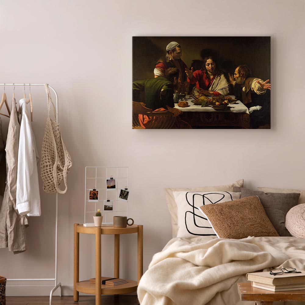 Unsere Bilder sind sicher und geruchsneutral und eignen sich daher ideal für Kinderzimmer. Die Größe wird Ihr Kind sicher beeindrucken! Bilder für Schlafzimmer sind ein echter Blickfang, genauso wie Bilder Wohnzimmer. Dekorieren Sie die Wände in Ihrem privaten Bereich mit einem Bild „Leinwandbild – Caravaggio – Supper at Emmaus“. Wir empfehlen Bilder für Schlafzimmer , die Sie beruhigen und in eine erholsame Stimmung versetzen. Bilder aus unserer Kollektion werden Ihrem Interieur eine außergewöhnliche Atmosphäre verleihen. Unabhängig vom Raum schaffen auch Kunst Bilder eine gemütliche Atmosphäre für die Gäste. Massive Holzrahmen unterstreichen den einzigartigen Charakter der Schlafzimmerbilder, und ein schneller und sicherer Versand ist ein weiterer Vorteil, der für diese Wanddekorationen spricht Leinwandbilder sind in fünf Varianten erhältlich, sodass jeder Kunde die perfekte Option für seine Bedürfnisse findet.Die Variante auf Strukturleinwand (Standard) ist eine universelle Dekoration, die das Haushaltsbudget nicht belastet.Für Liebhaber edler Materialien ist ein Druck auf italienischer Leinwand aus 100 % Baumwolle die ideale Wahl.Und für Fans der Malerei? Hier überzeugt die außergewöhnliche Premium-Print-Technik – ein Bild, das auf Strukturleinwand gedruckt und von Hand mit einer Schicht transparenten Gels überzogen wird, die die Pinselstriche eines Künstlers imitiert – ein „wie gemalt“-Effekt, aber zu einem günstigeren Preis.Die Variante im soliden Holzrahmen des Typs American Box mit Tiefeneffekt (zwei Rahmenfarben zur Auswahl, Motiv auf Strukturleinwand gedruckt) bietet eine klassische Lösung in neuer Form.Das Akustikbild (Druck auf Strukturleinwand mit einer zusätzlichen Schicht schallabsorbierendem Schaumstoff) ist dagegen ein Volltreffer für alle, die Ästhetik mit Funktionalität verbinden möchten.Zwar sind die beiden letzten Optionen nur für bestimmte Größen von einteiligen Bildern verfügbar, doch bei allen Varianten legen wir GRATIS die erforderliche Anzahl an Haken und Nägeln zur Montage bei.