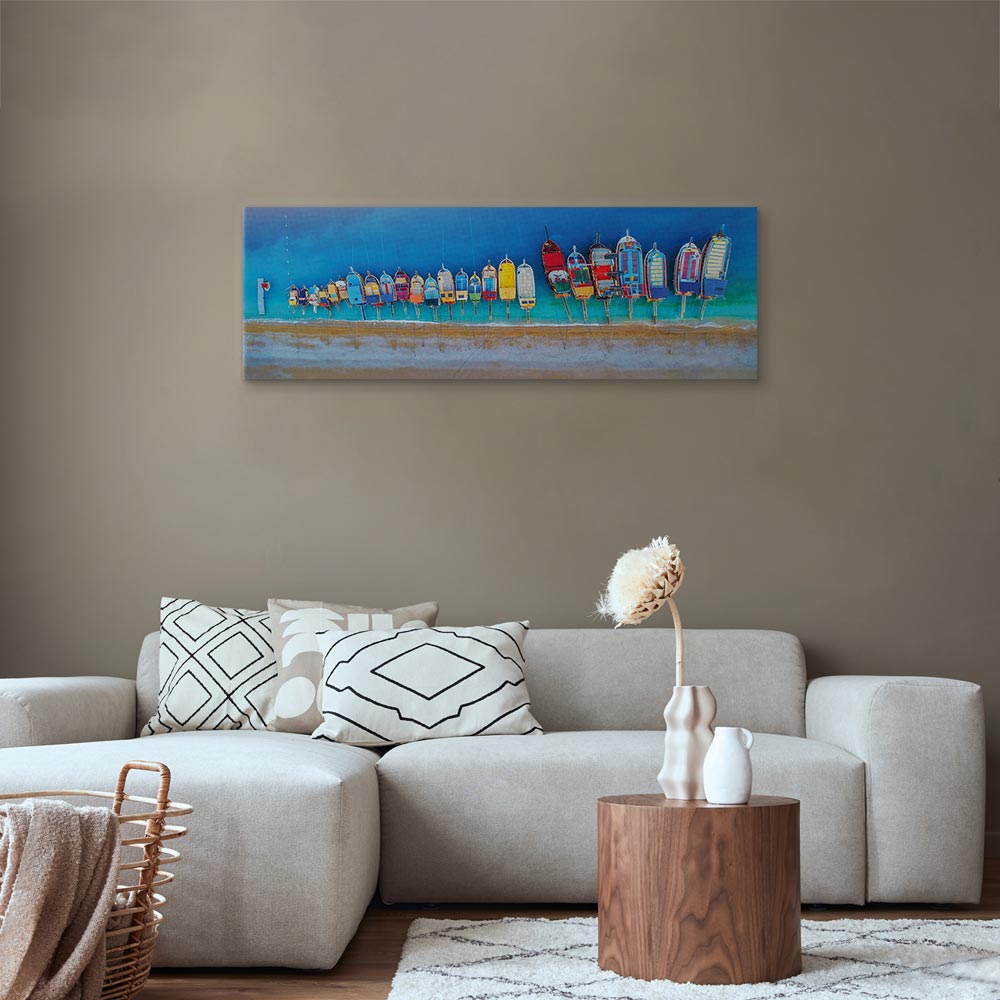 Unsere Bilder sind sicher und geruchsneutral und eignen sich daher ideal für Kinderzimmer. Die Größe wird Ihr Kind sicher beeindrucken! Bilder für Schlafzimmer sind ein echter Blickfang, genauso wie Bilder Wohnzimmer. Dekorieren Sie die Wände in Ihrem privaten Bereich mit einem Bild „Leinwandbild – Colourful Boats (1 Part) Narrow“. Wir empfehlen Bilder für Schlafzimmer , die Sie beruhigen und in eine erholsame Stimmung versetzen. Bilder aus unserer Kollektion werden Ihrem Interieur eine außergewöhnliche Atmosphäre verleihen. Unabhängig vom Raum schaffen auch Kunst Bilder eine gemütliche Atmosphäre für die Gäste. Massive Holzrahmen unterstreichen den einzigartigen Charakter der Schlafzimmerbilder, und ein schneller und sicherer Versand ist ein weiterer Vorteil, der für diese Wanddekorationen spricht Leinwandbilder sind in fünf Varianten erhältlich, sodass jeder Kunde die perfekte Option für seine Bedürfnisse findet.Die Variante auf Strukturleinwand (Standard) ist eine universelle Dekoration, die das Haushaltsbudget nicht belastet.Für Liebhaber edler Materialien ist ein Druck auf italienischer Leinwand aus 100 % Baumwolle die ideale Wahl.Und für Fans der Malerei? Hier überzeugt die außergewöhnliche Premium-Print-Technik – ein Bild, das auf Strukturleinwand gedruckt und von Hand mit einer Schicht transparenten Gels überzogen wird, die die Pinselstriche eines Künstlers imitiert – ein „wie gemalt“-Effekt, aber zu einem günstigeren Preis.Die Variante im soliden Holzrahmen des Typs American Box mit Tiefeneffekt (zwei Rahmenfarben zur Auswahl, Motiv auf Strukturleinwand gedruckt) bietet eine klassische Lösung in neuer Form.Das Akustikbild (Druck auf Strukturleinwand mit einer zusätzlichen Schicht schallabsorbierendem Schaumstoff) ist dagegen ein Volltreffer für alle, die Ästhetik mit Funktionalität verbinden möchten.Zwar sind die beiden letzten Optionen nur für bestimmte Größen von einteiligen Bildern verfügbar, doch bei allen Varianten legen wir GRATIS die erforderliche Anzahl an Haken und Nägeln zur Montage bei.
