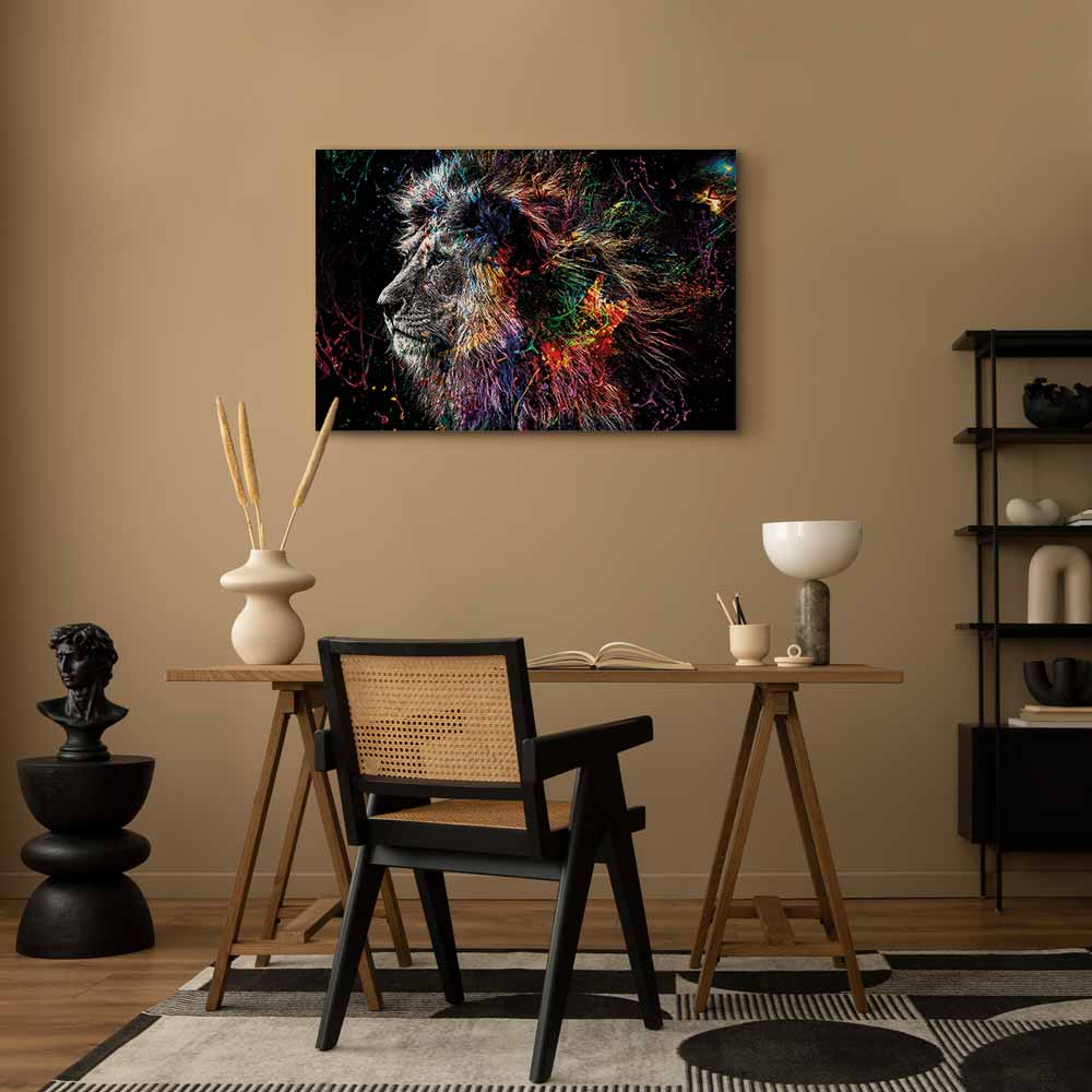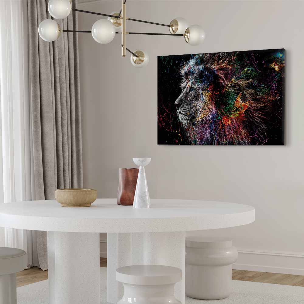 Unsere Bilder sind sicher und geruchsneutral und eignen sich daher ideal für Kinderzimmer. Die Größe wird Ihr Kind sicher beeindrucken! Bilder für Schlafzimmer sind ein echter Blickfang, genauso wie Bilder Wohnzimmer. Dekorieren Sie die Wände in Ihrem privaten Bereich mit einem Bild „Leinwandbild – Crazy Lion (1 Part) Wide“. Wir empfehlen Bilder für Schlafzimmer , die Sie beruhigen und in eine erholsame Stimmung versetzen. Bilder aus unserer Kollektion werden Ihrem Interieur eine außergewöhnliche Atmosphäre verleihen. Unabhängig vom Raum schaffen auch Kunst Bilder eine gemütliche Atmosphäre für die Gäste. Massive Holzrahmen unterstreichen den einzigartigen Charakter der Schlafzimmerbilder, und ein schneller und sicherer Versand ist ein weiterer Vorteil, der für diese Wanddekorationen spricht Leinwandbilder sind in fünf Varianten erhältlich, sodass jeder Kunde die perfekte Option für seine Bedürfnisse findet.Die Variante auf Strukturleinwand (Standard) ist eine universelle Dekoration, die das Haushaltsbudget nicht belastet.Für Liebhaber edler Materialien ist ein Druck auf italienischer Leinwand aus 100 % Baumwolle die ideale Wahl.Und für Fans der Malerei? Hier überzeugt die außergewöhnliche Premium-Print-Technik – ein Bild, das auf Strukturleinwand gedruckt und von Hand mit einer Schicht transparenten Gels überzogen wird, die die Pinselstriche eines Künstlers imitiert – ein „wie gemalt“-Effekt, aber zu einem günstigeren Preis.Die Variante im soliden Holzrahmen des Typs American Box mit Tiefeneffekt (zwei Rahmenfarben zur Auswahl, Motiv auf Strukturleinwand gedruckt) bietet eine klassische Lösung in neuer Form.Das Akustikbild (Druck auf Strukturleinwand mit einer zusätzlichen Schicht schallabsorbierendem Schaumstoff) ist dagegen ein Volltreffer für alle, die Ästhetik mit Funktionalität verbinden möchten.Zwar sind die beiden letzten Optionen nur für bestimmte Größen von einteiligen Bildern verfügbar, doch bei allen Varianten legen wir GRATIS die erforderliche Anzahl an Haken und Nägeln zur Montage bei.