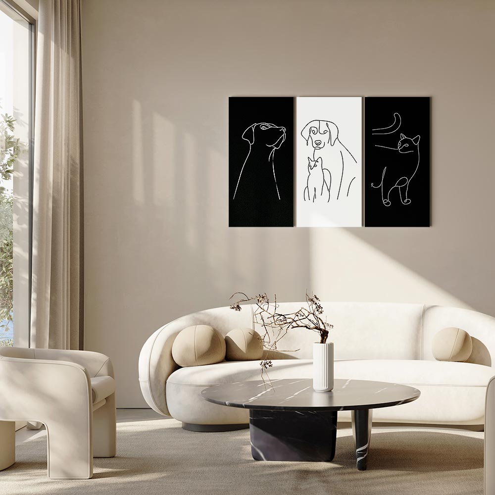 Unsere Bilder sind sicher und geruchsneutral und eignen sich daher ideal für Kinderzimmer. Die Größe wird Ihr Kind sicher beeindrucken! Bilder für Schlafzimmer sind ein echter Blickfang, genauso wie Bilder Wohnzimmer. Dekorieren Sie die Wände in Ihrem privaten Bereich mit einem Bild „Leinwandbild – Domestic Animals (3 Parts)“. Wir empfehlen Bilder für Schlafzimmer , die Sie beruhigen und in eine erholsame Stimmung versetzen. Bilder aus unserer Kollektion werden Ihrem Interieur eine außergewöhnliche Atmosphäre verleihen. Unabhängig vom Raum schaffen auch Kunst Bilder eine gemütliche Atmosphäre für die Gäste. Massive Holzrahmen unterstreichen den einzigartigen Charakter der Schlafzimmerbilder, und ein schneller und sicherer Versand ist ein weiterer Vorteil, der für diese Wanddekorationen spricht Leinwandbilder sind in fünf Varianten erhältlich, sodass jeder Kunde die perfekte Option für seine Bedürfnisse findet.Die Variante auf Strukturleinwand (Standard) ist eine universelle Dekoration, die das Haushaltsbudget nicht belastet.Für Liebhaber edler Materialien ist ein Druck auf italienischer Leinwand aus 100 % Baumwolle die ideale Wahl.Und für Fans der Malerei? Hier überzeugt die außergewöhnliche Premium-Print-Technik – ein Bild, das auf Strukturleinwand gedruckt und von Hand mit einer Schicht transparenten Gels überzogen wird, die die Pinselstriche eines Künstlers imitiert – ein „wie gemalt“-Effekt, aber zu einem günstigeren Preis.Die Variante im soliden Holzrahmen des Typs American Box mit Tiefeneffekt (zwei Rahmenfarben zur Auswahl, Motiv auf Strukturleinwand gedruckt) bietet eine klassische Lösung in neuer Form.Das Akustikbild (Druck auf Strukturleinwand mit einer zusätzlichen Schicht schallabsorbierendem Schaumstoff) ist dagegen ein Volltreffer für alle, die Ästhetik mit Funktionalität verbinden möchten.Zwar sind die beiden letzten Optionen nur für bestimmte Größen von einteiligen Bildern verfügbar, doch bei allen Varianten legen wir GRATIS die erforderliche Anzahl an Haken und Nägeln zur Montage bei.