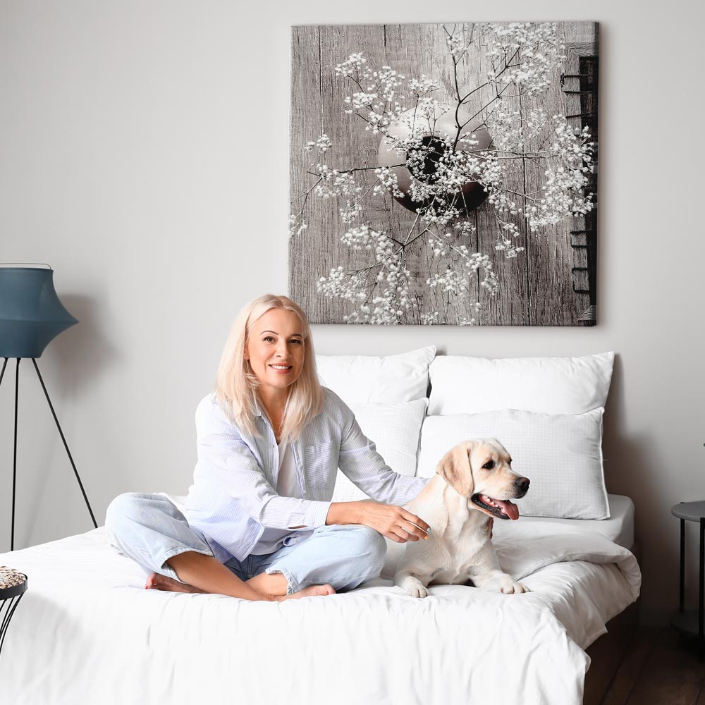 Unsere Bilder sind sicher und geruchsneutral und eignen sich daher ideal für Kinderzimmer. Die Größe wird Ihr Kind sicher beeindrucken! Bilder für Schlafzimmer sind ein echter Blickfang, genauso wie Bilder Wohnzimmer. Dekorieren Sie die Wände in Ihrem privaten Bereich mit einem Bild „Leinwandbild – Dried Flowers (1 Part) Square“. Wir empfehlen Bilder für Schlafzimmer , die Sie beruhigen und in eine erholsame Stimmung versetzen. Bilder aus unserer Kollektion werden Ihrem Interieur eine außergewöhnliche Atmosphäre verleihen. Unabhängig vom Raum schaffen auch Kunst Bilder eine gemütliche Atmosphäre für die Gäste. Massive Holzrahmen unterstreichen den einzigartigen Charakter der Schlafzimmerbilder, und ein schneller und sicherer Versand ist ein weiterer Vorteil, der für diese Wanddekorationen spricht Leinwandbilder sind in fünf Varianten erhältlich, sodass jeder Kunde die perfekte Option für seine Bedürfnisse findet.Die Variante auf Strukturleinwand (Standard) ist eine universelle Dekoration, die das Haushaltsbudget nicht belastet.Für Liebhaber edler Materialien ist ein Druck auf italienischer Leinwand aus 100 % Baumwolle die ideale Wahl.Und für Fans der Malerei? Hier überzeugt die außergewöhnliche Premium-Print-Technik – ein Bild, das auf Strukturleinwand gedruckt und von Hand mit einer Schicht transparenten Gels überzogen wird, die die Pinselstriche eines Künstlers imitiert – ein „wie gemalt“-Effekt, aber zu einem günstigeren Preis.Die Variante im soliden Holzrahmen des Typs American Box mit Tiefeneffekt (zwei Rahmenfarben zur Auswahl, Motiv auf Strukturleinwand gedruckt) bietet eine klassische Lösung in neuer Form.Das Akustikbild (Druck auf Strukturleinwand mit einer zusätzlichen Schicht schallabsorbierendem Schaumstoff) ist dagegen ein Volltreffer für alle, die Ästhetik mit Funktionalität verbinden möchten.Zwar sind die beiden letzten Optionen nur für bestimmte Größen von einteiligen Bildern verfügbar, doch bei allen Varianten legen wir GRATIS die erforderliche Anzahl an Haken und Nägeln zur Montage bei.