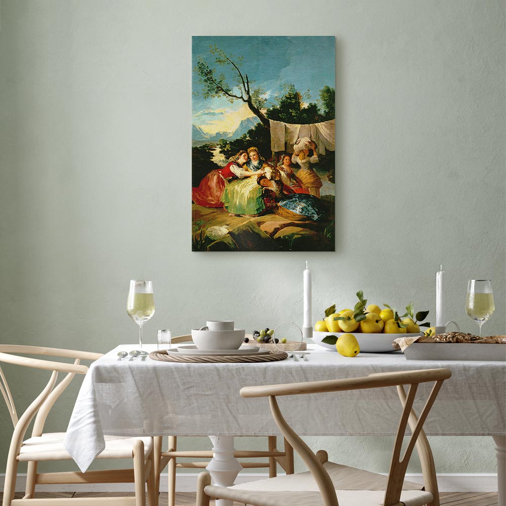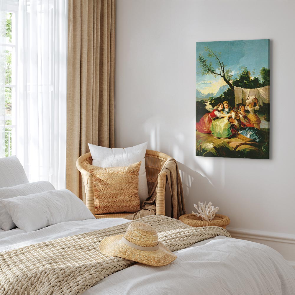 Unsere Bilder sind sicher und geruchsneutral und eignen sich daher ideal für Kinderzimmer. Die Größe wird Ihr Kind sicher beeindrucken! Bilder für Schlafzimmer sind ein echter Blickfang, genauso wie Bilder Wohnzimmer. Dekorieren Sie die Wände in Ihrem privaten Bereich mit einem Bild „Leinwandbild – Francisco Goya – The Washerwomen“. Wir empfehlen Bilder für Schlafzimmer , die Sie beruhigen und in eine erholsame Stimmung versetzen. Bilder aus unserer Kollektion werden Ihrem Interieur eine außergewöhnliche Atmosphäre verleihen. Unabhängig vom Raum schaffen auch Kunst Bilder eine gemütliche Atmosphäre für die Gäste. Massive Holzrahmen unterstreichen den einzigartigen Charakter der Schlafzimmerbilder, und ein schneller und sicherer Versand ist ein weiterer Vorteil, der für diese Wanddekorationen spricht Leinwandbilder sind in fünf Varianten erhältlich, sodass jeder Kunde die perfekte Option für seine Bedürfnisse findet.Die Variante auf Strukturleinwand (Standard) ist eine universelle Dekoration, die das Haushaltsbudget nicht belastet.Für Liebhaber edler Materialien ist ein Druck auf italienischer Leinwand aus 100 % Baumwolle die ideale Wahl.Und für Fans der Malerei? Hier überzeugt die außergewöhnliche Premium-Print-Technik – ein Bild, das auf Strukturleinwand gedruckt und von Hand mit einer Schicht transparenten Gels überzogen wird, die die Pinselstriche eines Künstlers imitiert – ein „wie gemalt“-Effekt, aber zu einem günstigeren Preis.Die Variante im soliden Holzrahmen des Typs American Box mit Tiefeneffekt (zwei Rahmenfarben zur Auswahl, Motiv auf Strukturleinwand gedruckt) bietet eine klassische Lösung in neuer Form.Das Akustikbild (Druck auf Strukturleinwand mit einer zusätzlichen Schicht schallabsorbierendem Schaumstoff) ist dagegen ein Volltreffer für alle, die Ästhetik mit Funktionalität verbinden möchten.Zwar sind die beiden letzten Optionen nur für bestimmte Größen von einteiligen Bildern verfügbar, doch bei allen Varianten legen wir GRATIS die erforderliche Anzahl an Haken und Nägeln zur Montage bei.