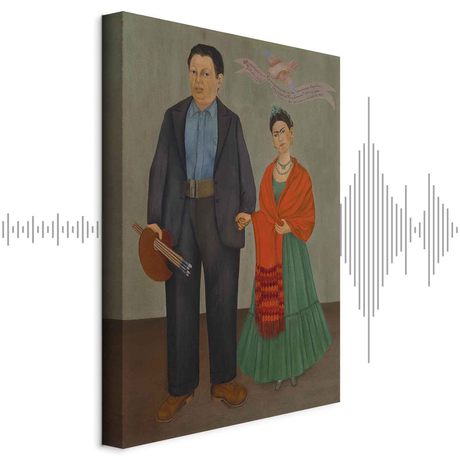 Unsere Bilder sind sicher und geruchsneutral und eignen sich daher ideal für Kinderzimmer. Die Größe wird Ihr Kind sicher beeindrucken! Bilder für Schlafzimmer sind ein echter Blickfang, genauso wie Bilder Wohnzimmer. Dekorieren Sie die Wände in Ihrem privaten Bereich mit einem Bild „Leinwandbild – Frida Kahlo – Frida and Diego Rivera“. Wir empfehlen Bilder für Schlafzimmer , die Sie beruhigen und in eine erholsame Stimmung versetzen. Bilder aus unserer Kollektion werden Ihrem Interieur eine außergewöhnliche Atmosphäre verleihen. Unabhängig vom Raum schaffen auch Kunst Bilder eine gemütliche Atmosphäre für die Gäste. Massive Holzrahmen unterstreichen den einzigartigen Charakter der Schlafzimmerbilder, und ein schneller und sicherer Versand ist ein weiterer Vorteil, der für diese Wanddekorationen spricht Leinwandbilder sind in fünf Varianten erhältlich, sodass jeder Kunde die perfekte Option für seine Bedürfnisse findet.Die Variante auf Strukturleinwand (Standard) ist eine universelle Dekoration, die das Haushaltsbudget nicht belastet.Für Liebhaber edler Materialien ist ein Druck auf italienischer Leinwand aus 100 % Baumwolle die ideale Wahl.Und für Fans der Malerei? Hier überzeugt die außergewöhnliche Premium-Print-Technik – ein Bild, das auf Strukturleinwand gedruckt und von Hand mit einer Schicht transparenten Gels überzogen wird, die die Pinselstriche eines Künstlers imitiert – ein „wie gemalt“-Effekt, aber zu einem günstigeren Preis.Die Variante im soliden Holzrahmen des Typs American Box mit Tiefeneffekt (zwei Rahmenfarben zur Auswahl, Motiv auf Strukturleinwand gedruckt) bietet eine klassische Lösung in neuer Form.Das Akustikbild (Druck auf Strukturleinwand mit einer zusätzlichen Schicht schallabsorbierendem Schaumstoff) ist dagegen ein Volltreffer für alle, die Ästhetik mit Funktionalität verbinden möchten.Zwar sind die beiden letzten Optionen nur für bestimmte Größen von einteiligen Bildern verfügbar, doch bei allen Varianten legen wir GRATIS die erforderliche Anzahl an Haken und Nägeln zur Montage bei.