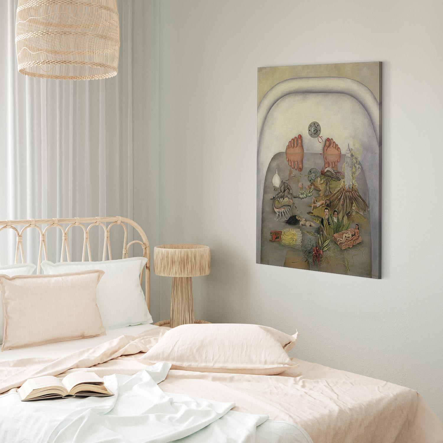 Unsere Bilder sind sicher und geruchsneutral und eignen sich daher ideal für Kinderzimmer. Die Größe wird Ihr Kind sicher beeindrucken! Bilder für Schlafzimmer sind ein echter Blickfang, genauso wie Bilder Wohnzimmer. Dekorieren Sie die Wände in Ihrem privaten Bereich mit einem Bild „Leinwandbild – Frida Kahlo – What the Water Gave Me“. Wir empfehlen Bilder für Schlafzimmer , die Sie beruhigen und in eine erholsame Stimmung versetzen. Bilder aus unserer Kollektion werden Ihrem Interieur eine außergewöhnliche Atmosphäre verleihen. Unabhängig vom Raum schaffen auch Kunst Bilder eine gemütliche Atmosphäre für die Gäste. Massive Holzrahmen unterstreichen den einzigartigen Charakter der Schlafzimmerbilder, und ein schneller und sicherer Versand ist ein weiterer Vorteil, der für diese Wanddekorationen spricht Leinwandbilder sind in fünf Varianten erhältlich, sodass jeder Kunde die perfekte Option für seine Bedürfnisse findet.Die Variante auf Strukturleinwand (Standard) ist eine universelle Dekoration, die das Haushaltsbudget nicht belastet.Für Liebhaber edler Materialien ist ein Druck auf italienischer Leinwand aus 100 % Baumwolle die ideale Wahl.Und für Fans der Malerei? Hier überzeugt die außergewöhnliche Premium-Print-Technik – ein Bild, das auf Strukturleinwand gedruckt und von Hand mit einer Schicht transparenten Gels überzogen wird, die die Pinselstriche eines Künstlers imitiert – ein „wie gemalt“-Effekt, aber zu einem günstigeren Preis.Die Variante im soliden Holzrahmen des Typs American Box mit Tiefeneffekt (zwei Rahmenfarben zur Auswahl, Motiv auf Strukturleinwand gedruckt) bietet eine klassische Lösung in neuer Form.Das Akustikbild (Druck auf Strukturleinwand mit einer zusätzlichen Schicht schallabsorbierendem Schaumstoff) ist dagegen ein Volltreffer für alle, die Ästhetik mit Funktionalität verbinden möchten.Zwar sind die beiden letzten Optionen nur für bestimmte Größen von einteiligen Bildern verfügbar, doch bei allen Varianten legen wir GRATIS die erforderliche Anzahl an Haken und Nägeln zur Montage bei.