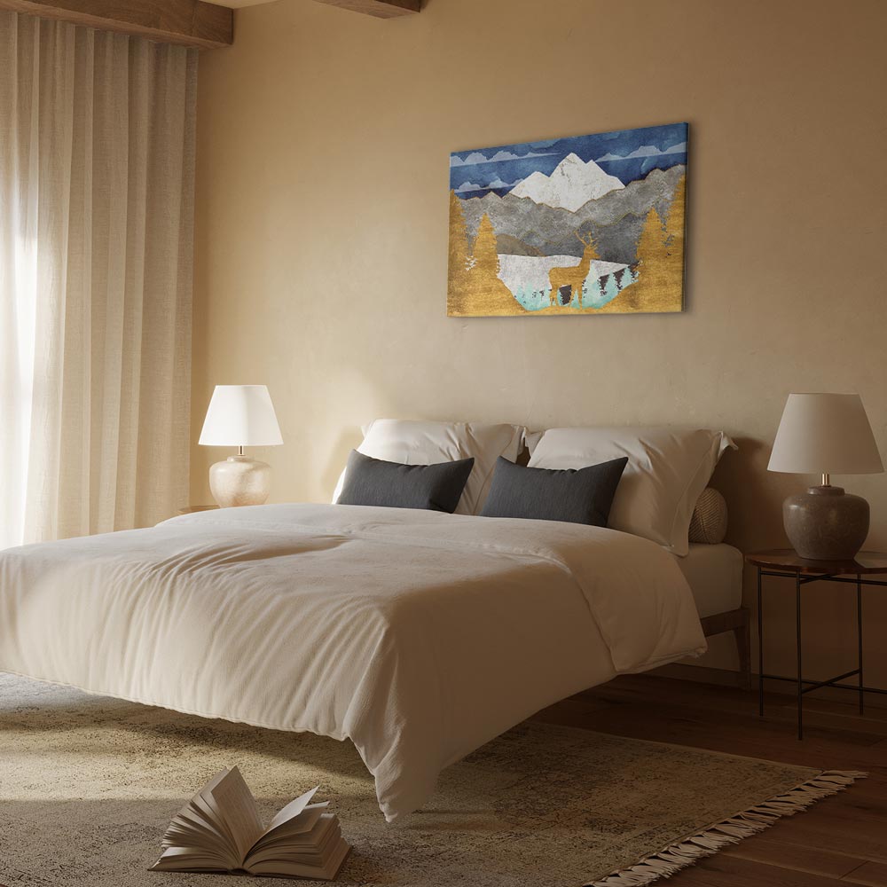 Unsere Bilder sind sicher und geruchsneutral und eignen sich daher ideal für Kinderzimmer. Die Größe wird Ihr Kind sicher beeindrucken! Bilder für Schlafzimmer sind ein echter Blickfang, genauso wie Bilder Wohnzimmer. Dekorieren Sie die Wände in Ihrem privaten Bereich mit einem Bild „Leinwandbild – Golden Land (1 Part) Wide“. Wir empfehlen Bilder für Schlafzimmer , die Sie beruhigen und in eine erholsame Stimmung versetzen. Bilder aus unserer Kollektion werden Ihrem Interieur eine außergewöhnliche Atmosphäre verleihen. Unabhängig vom Raum schaffen auch Kunst Bilder eine gemütliche Atmosphäre für die Gäste. Massive Holzrahmen unterstreichen den einzigartigen Charakter der Schlafzimmerbilder, und ein schneller und sicherer Versand ist ein weiterer Vorteil, der für diese Wanddekorationen spricht Leinwandbilder sind in fünf Varianten erhältlich, sodass jeder Kunde die perfekte Option für seine Bedürfnisse findet.Die Variante auf Strukturleinwand (Standard) ist eine universelle Dekoration, die das Haushaltsbudget nicht belastet.Für Liebhaber edler Materialien ist ein Druck auf italienischer Leinwand aus 100 % Baumwolle die ideale Wahl.Und für Fans der Malerei? Hier überzeugt die außergewöhnliche Premium-Print-Technik – ein Bild, das auf Strukturleinwand gedruckt und von Hand mit einer Schicht transparenten Gels überzogen wird, die die Pinselstriche eines Künstlers imitiert – ein „wie gemalt“-Effekt, aber zu einem günstigeren Preis.Die Variante im soliden Holzrahmen des Typs American Box mit Tiefeneffekt (zwei Rahmenfarben zur Auswahl, Motiv auf Strukturleinwand gedruckt) bietet eine klassische Lösung in neuer Form.Das Akustikbild (Druck auf Strukturleinwand mit einer zusätzlichen Schicht schallabsorbierendem Schaumstoff) ist dagegen ein Volltreffer für alle, die Ästhetik mit Funktionalität verbinden möchten.Zwar sind die beiden letzten Optionen nur für bestimmte Größen von einteiligen Bildern verfügbar, doch bei allen Varianten legen wir GRATIS die erforderliche Anzahl an Haken und Nägeln zur Montage bei.