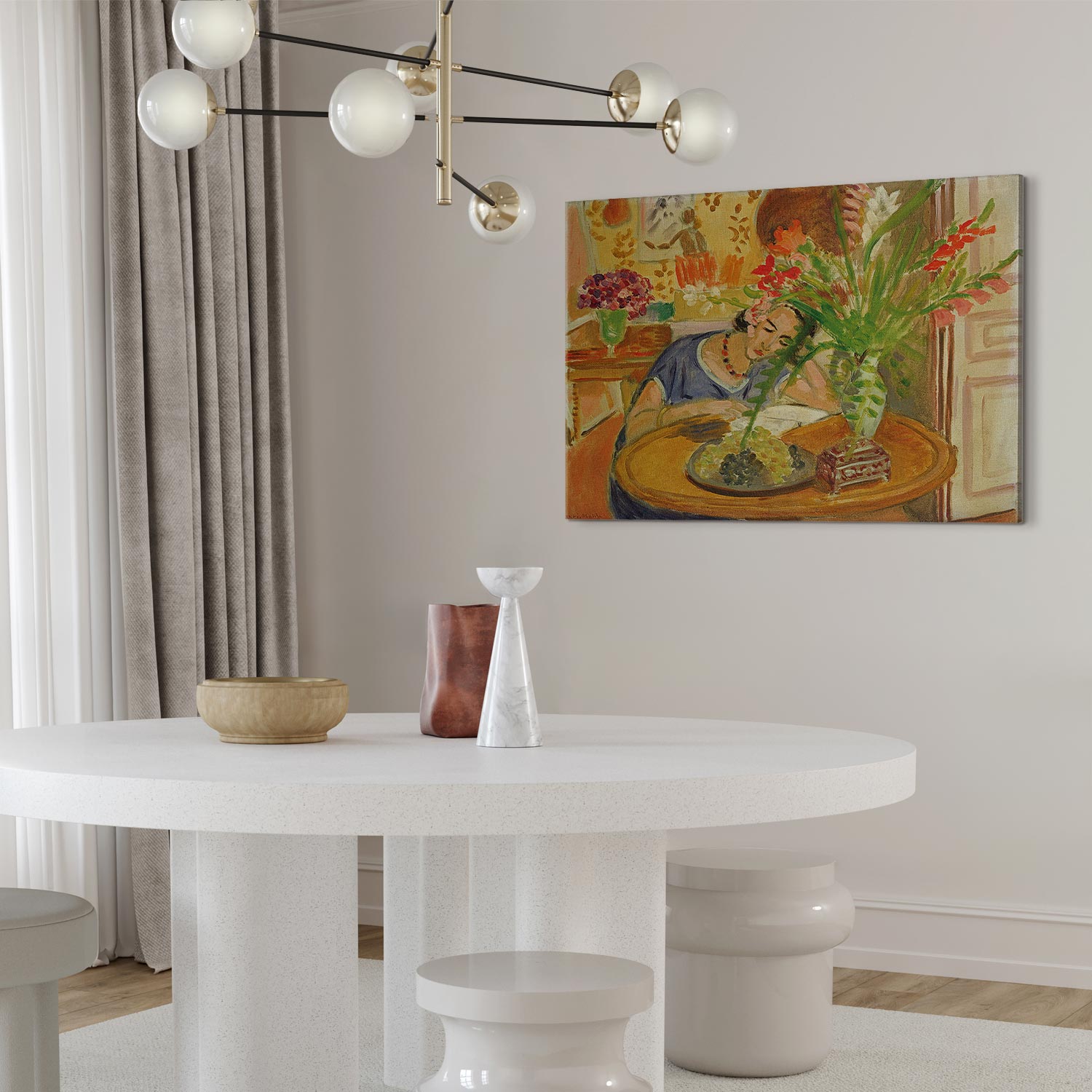 Unsere Bilder sind sicher und geruchsneutral und eignen sich daher ideal für Kinderzimmer. Die Größe wird Ihr Kind sicher beeindrucken! Bilder für Schlafzimmer sind ein echter Blickfang, genauso wie Bilder Wohnzimmer. Dekorieren Sie die Wände in Ihrem privaten Bereich mit einem Bild „Leinwandbild – Henri Matisse – Woman with Gladioli“. Wir empfehlen Bilder für Schlafzimmer , die Sie beruhigen und in eine erholsame Stimmung versetzen. Bilder aus unserer Kollektion werden Ihrem Interieur eine außergewöhnliche Atmosphäre verleihen. Unabhängig vom Raum schaffen auch Kunst Bilder eine gemütliche Atmosphäre für die Gäste. Massive Holzrahmen unterstreichen den einzigartigen Charakter der Schlafzimmerbilder, und ein schneller und sicherer Versand ist ein weiterer Vorteil, der für diese Wanddekorationen spricht Leinwandbilder sind in fünf Varianten erhältlich, sodass jeder Kunde die perfekte Option für seine Bedürfnisse findet.Die Variante auf Strukturleinwand (Standard) ist eine universelle Dekoration, die das Haushaltsbudget nicht belastet.Für Liebhaber edler Materialien ist ein Druck auf italienischer Leinwand aus 100 % Baumwolle die ideale Wahl.Und für Fans der Malerei? Hier überzeugt die außergewöhnliche Premium-Print-Technik – ein Bild, das auf Strukturleinwand gedruckt und von Hand mit einer Schicht transparenten Gels überzogen wird, die die Pinselstriche eines Künstlers imitiert – ein „wie gemalt“-Effekt, aber zu einem günstigeren Preis.Die Variante im soliden Holzrahmen des Typs American Box mit Tiefeneffekt (zwei Rahmenfarben zur Auswahl, Motiv auf Strukturleinwand gedruckt) bietet eine klassische Lösung in neuer Form.Das Akustikbild (Druck auf Strukturleinwand mit einer zusätzlichen Schicht schallabsorbierendem Schaumstoff) ist dagegen ein Volltreffer für alle, die Ästhetik mit Funktionalität verbinden möchten.Zwar sind die beiden letzten Optionen nur für bestimmte Größen von einteiligen Bildern verfügbar, doch bei allen Varianten legen wir GRATIS die erforderliche Anzahl an Haken und Nägeln zur Montage bei.