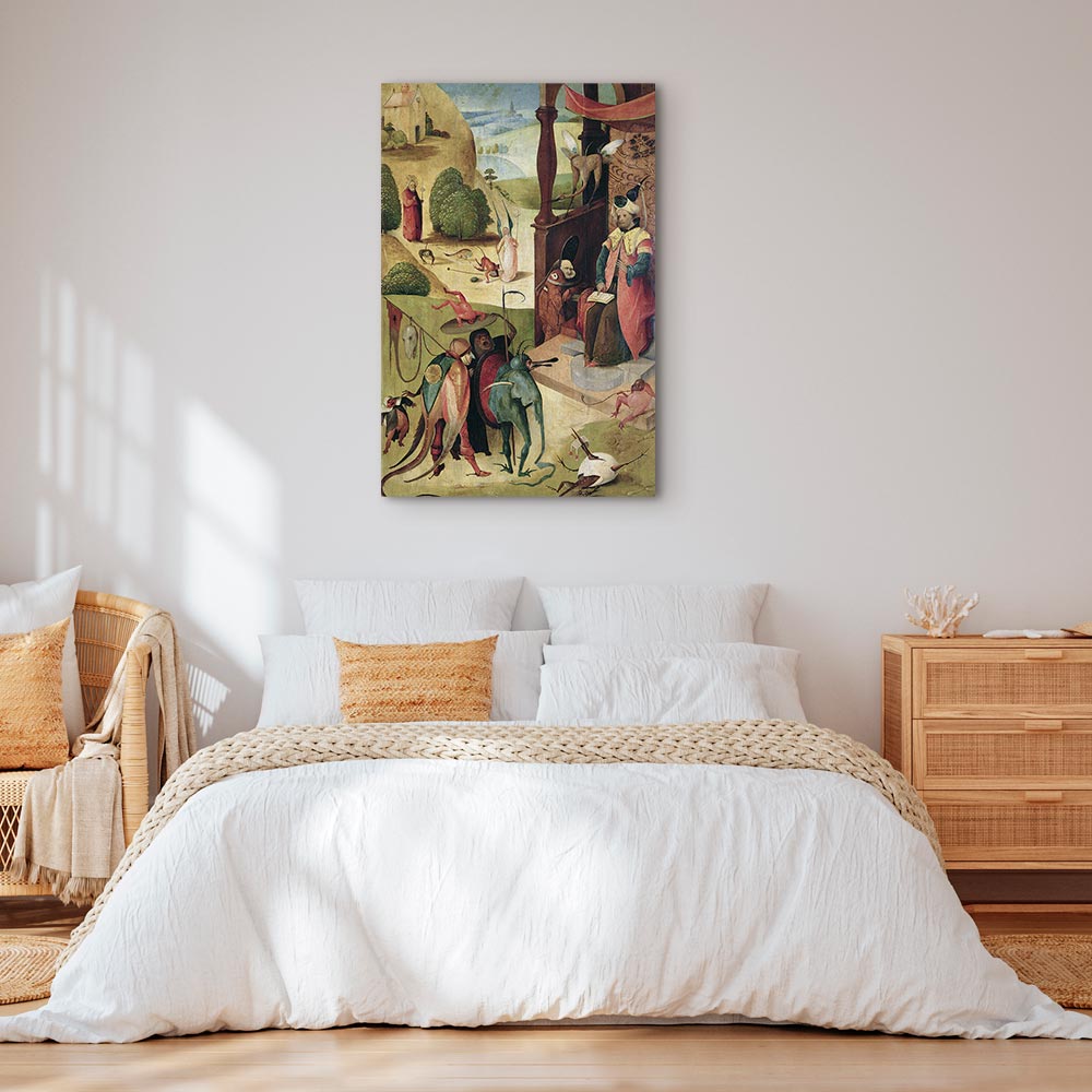 Unsere Bilder sind sicher und geruchsneutral und eignen sich daher ideal für Kinderzimmer. Die Größe wird Ihr Kind sicher beeindrucken! Bilder für Schlafzimmer sind ein echter Blickfang, genauso wie Bilder Wohnzimmer. Dekorieren Sie die Wände in Ihrem privaten Bereich mit einem Bild „Leinwandbild – Hieronymus Bosch – St. James and the Magician“. Wir empfehlen Bilder für Schlafzimmer , die Sie beruhigen und in eine erholsame Stimmung versetzen. Bilder aus unserer Kollektion werden Ihrem Interieur eine außergewöhnliche Atmosphäre verleihen. Unabhängig vom Raum schaffen auch Kunst Bilder eine gemütliche Atmosphäre für die Gäste. Massive Holzrahmen unterstreichen den einzigartigen Charakter der Schlafzimmerbilder, und ein schneller und sicherer Versand ist ein weiterer Vorteil, der für diese Wanddekorationen spricht Leinwandbilder sind in fünf Varianten erhältlich, sodass jeder Kunde die perfekte Option für seine Bedürfnisse findet.Die Variante auf Strukturleinwand (Standard) ist eine universelle Dekoration, die das Haushaltsbudget nicht belastet.Für Liebhaber edler Materialien ist ein Druck auf italienischer Leinwand aus 100 % Baumwolle die ideale Wahl.Und für Fans der Malerei? Hier überzeugt die außergewöhnliche Premium-Print-Technik – ein Bild, das auf Strukturleinwand gedruckt und von Hand mit einer Schicht transparenten Gels überzogen wird, die die Pinselstriche eines Künstlers imitiert – ein „wie gemalt“-Effekt, aber zu einem günstigeren Preis.Die Variante im soliden Holzrahmen des Typs American Box mit Tiefeneffekt (zwei Rahmenfarben zur Auswahl, Motiv auf Strukturleinwand gedruckt) bietet eine klassische Lösung in neuer Form.Das Akustikbild (Druck auf Strukturleinwand mit einer zusätzlichen Schicht schallabsorbierendem Schaumstoff) ist dagegen ein Volltreffer für alle, die Ästhetik mit Funktionalität verbinden möchten.Zwar sind die beiden letzten Optionen nur für bestimmte Größen von einteiligen Bildern verfügbar, doch bei allen Varianten legen wir GRATIS die erforderliche Anzahl an Haken und Nägeln zur Montage bei.
