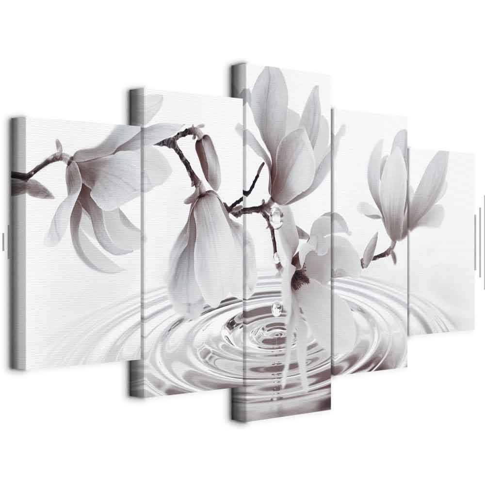 Unsere Bilder sind sicher und geruchsneutral und eignen sich daher ideal für Kinderzimmer. Die Größe wird Ihr Kind sicher beeindrucken! Bilder für Schlafzimmer sind ein echter Blickfang, genauso wie Bilder Wohnzimmer. Dekorieren Sie die Wände in Ihrem privaten Bereich mit einem Bild „Leinwandbild – Magnolias over Water (5 Parts) Wide Grey“. Wir empfehlen Bilder für Schlafzimmer , die Sie beruhigen und in eine erholsame Stimmung versetzen. Bilder aus unserer Kollektion werden Ihrem Interieur eine außergewöhnliche Atmosphäre verleihen. Unabhängig vom Raum schaffen auch Kunst Bilder eine gemütliche Atmosphäre für die Gäste. Massive Holzrahmen unterstreichen den einzigartigen Charakter der Schlafzimmerbilder, und ein schneller und sicherer Versand ist ein weiterer Vorteil, der für diese Wanddekorationen spricht Leinwandbilder sind in fünf Varianten erhältlich, sodass jeder Kunde die perfekte Option für seine Bedürfnisse findet.Die Variante auf Strukturleinwand (Standard) ist eine universelle Dekoration, die das Haushaltsbudget nicht belastet.Für Liebhaber edler Materialien ist ein Druck auf italienischer Leinwand aus 100 % Baumwolle die ideale Wahl.Und für Fans der Malerei? Hier überzeugt die außergewöhnliche Premium-Print-Technik – ein Bild, das auf Strukturleinwand gedruckt und von Hand mit einer Schicht transparenten Gels überzogen wird, die die Pinselstriche eines Künstlers imitiert – ein „wie gemalt“-Effekt, aber zu einem günstigeren Preis.Die Variante im soliden Holzrahmen des Typs American Box mit Tiefeneffekt (zwei Rahmenfarben zur Auswahl, Motiv auf Strukturleinwand gedruckt) bietet eine klassische Lösung in neuer Form.Das Akustikbild (Druck auf Strukturleinwand mit einer zusätzlichen Schicht schallabsorbierendem Schaumstoff) ist dagegen ein Volltreffer für alle, die Ästhetik mit Funktionalität verbinden möchten.Zwar sind die beiden letzten Optionen nur für bestimmte Größen von einteiligen Bildern verfügbar, doch bei allen Varianten legen wir GRATIS die erforderliche Anzahl an Haken und Nägeln zur Montage bei.