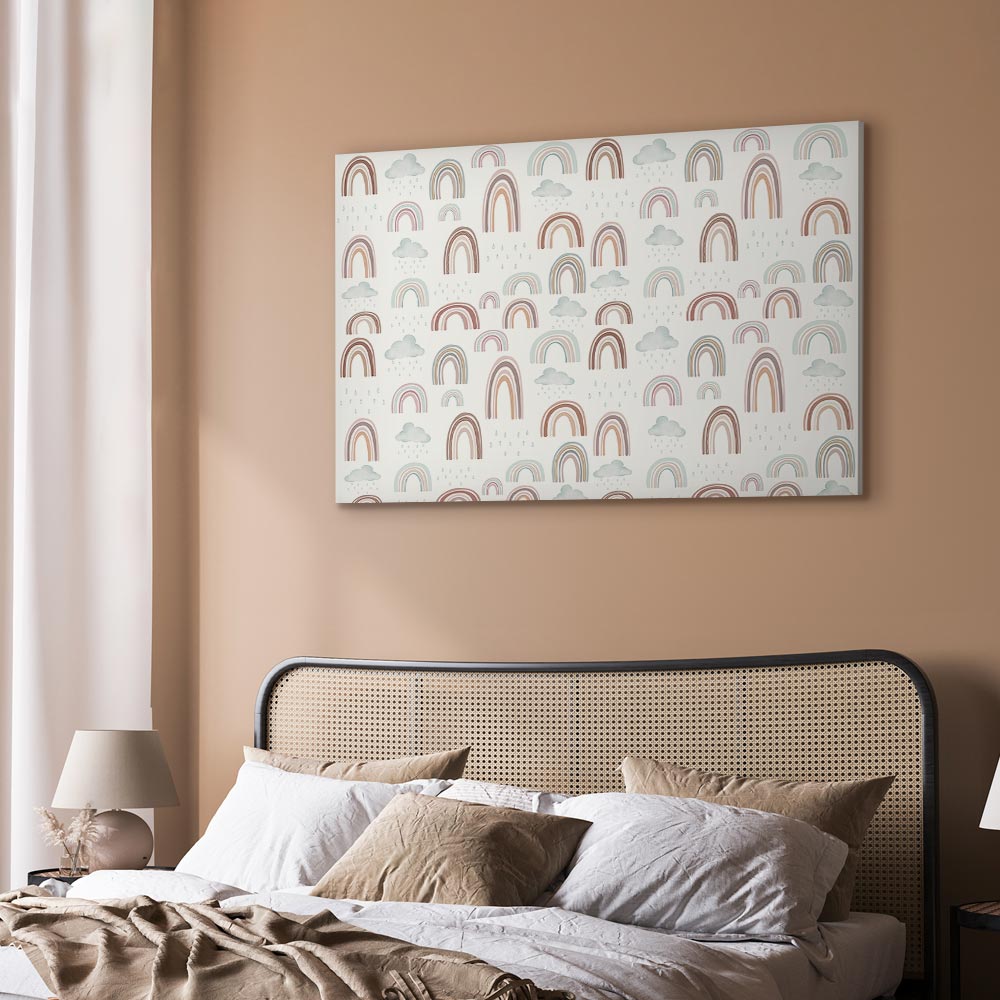 Unsere Bilder sind sicher und geruchsneutral und eignen sich daher ideal für Kinderzimmer. Die Größe wird Ihr Kind sicher beeindrucken! Bilder für Schlafzimmer sind ein echter Blickfang, genauso wie Bilder Wohnzimmer. Dekorieren Sie die Wände in Ihrem privaten Bereich mit einem Bild „Leinwandbild – Rainbows After the Storm – Rainbows of Various Sizes in Pastel Hues Among Rain Clouds in a Gray-Blue Shade“. Wir empfehlen Bilder für Schlafzimmer , die Sie beruhigen und in eine erholsame Stimmung versetzen. Bilder aus unserer Kollektion werden Ihrem Interieur eine außergewöhnliche Atmosphäre verleihen. Unabhängig vom Raum schaffen auch Kunst Bilder eine gemütliche Atmosphäre für die Gäste. Massive Holzrahmen unterstreichen den einzigartigen Charakter der Schlafzimmerbilder, und ein schneller und sicherer Versand ist ein weiterer Vorteil, der für diese Wanddekorationen spricht Leinwandbilder sind in fünf Varianten erhältlich, sodass jeder Kunde die perfekte Option für seine Bedürfnisse findet.Die Variante auf Strukturleinwand (Standard) ist eine universelle Dekoration, die das Haushaltsbudget nicht belastet.Für Liebhaber edler Materialien ist ein Druck auf italienischer Leinwand aus 100 % Baumwolle die ideale Wahl.Und für Fans der Malerei? Hier überzeugt die außergewöhnliche Premium-Print-Technik – ein Bild, das auf Strukturleinwand gedruckt und von Hand mit einer Schicht transparenten Gels überzogen wird, die die Pinselstriche eines Künstlers imitiert – ein „wie gemalt“-Effekt, aber zu einem günstigeren Preis.Die Variante im soliden Holzrahmen des Typs American Box mit Tiefeneffekt (zwei Rahmenfarben zur Auswahl, Motiv auf Strukturleinwand gedruckt) bietet eine klassische Lösung in neuer Form.Das Akustikbild (Druck auf Strukturleinwand mit einer zusätzlichen Schicht schallabsorbierendem Schaumstoff) ist dagegen ein Volltreffer für alle, die Ästhetik mit Funktionalität verbinden möchten.Zwar sind die beiden letzten Optionen nur für bestimmte Größen von einteiligen Bildern verfügbar, doch bei allen Varianten legen wir GRATIS die erforderliche Anzahl an Haken und Nägeln zur Montage bei.