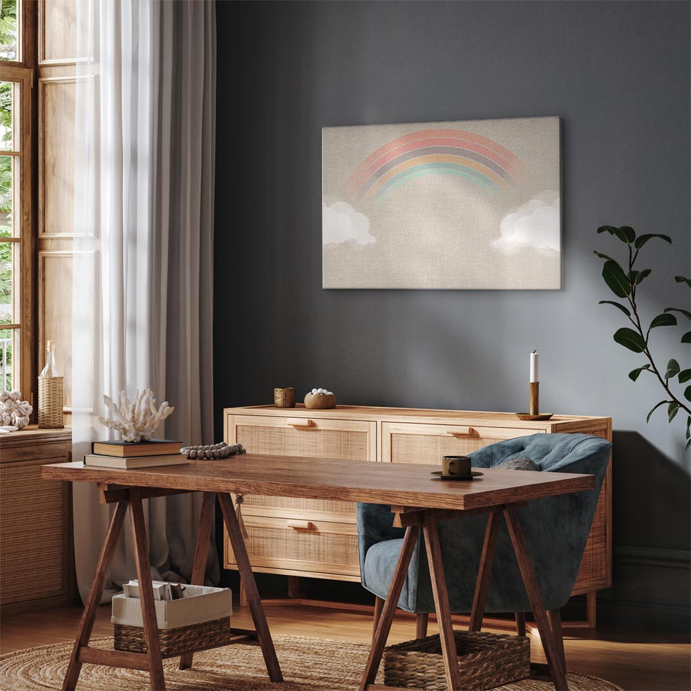 Unsere Bilder sind sicher und geruchsneutral und eignen sich daher ideal für Kinderzimmer. Die Größe wird Ihr Kind sicher beeindrucken! Bilder für Schlafzimmer sind ein echter Blickfang, genauso wie Bilder Wohnzimmer. Dekorieren Sie die Wände in Ihrem privaten Bereich mit einem Bild „Leinwandbild – Rainy June – Colorful Rainbow Emerging from Clouds on a Bright Background“. Wir empfehlen Bilder für Schlafzimmer , die Sie beruhigen und in eine erholsame Stimmung versetzen. Bilder aus unserer Kollektion werden Ihrem Interieur eine außergewöhnliche Atmosphäre verleihen. Unabhängig vom Raum schaffen auch Kunst Bilder eine gemütliche Atmosphäre für die Gäste. Massive Holzrahmen unterstreichen den einzigartigen Charakter der Schlafzimmerbilder, und ein schneller und sicherer Versand ist ein weiterer Vorteil, der für diese Wanddekorationen spricht Leinwandbilder sind in fünf Varianten erhältlich, sodass jeder Kunde die perfekte Option für seine Bedürfnisse findet.Die Variante auf Strukturleinwand (Standard) ist eine universelle Dekoration, die das Haushaltsbudget nicht belastet.Für Liebhaber edler Materialien ist ein Druck auf italienischer Leinwand aus 100 % Baumwolle die ideale Wahl.Und für Fans der Malerei? Hier überzeugt die außergewöhnliche Premium-Print-Technik – ein Bild, das auf Strukturleinwand gedruckt und von Hand mit einer Schicht transparenten Gels überzogen wird, die die Pinselstriche eines Künstlers imitiert – ein „wie gemalt“-Effekt, aber zu einem günstigeren Preis.Die Variante im soliden Holzrahmen des Typs American Box mit Tiefeneffekt (zwei Rahmenfarben zur Auswahl, Motiv auf Strukturleinwand gedruckt) bietet eine klassische Lösung in neuer Form.Das Akustikbild (Druck auf Strukturleinwand mit einer zusätzlichen Schicht schallabsorbierendem Schaumstoff) ist dagegen ein Volltreffer für alle, die Ästhetik mit Funktionalität verbinden möchten.Zwar sind die beiden letzten Optionen nur für bestimmte Größen von einteiligen Bildern verfügbar, doch bei allen Varianten legen wir GRATIS die erforderliche Anzahl an Haken und Nägeln zur Montage bei.