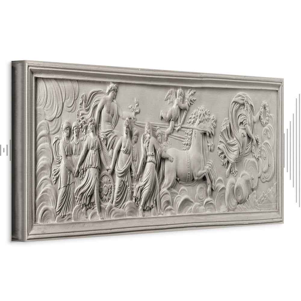 Unsere Bilder sind sicher und geruchsneutral und eignen sich daher ideal für Kinderzimmer. Die Größe wird Ihr Kind sicher beeindrucken! Bilder für Schlafzimmer sind ein echter Blickfang, genauso wie Bilder Wohnzimmer. Dekorieren Sie die Wände in Ihrem privaten Bereich mit einem Bild „Leinwandbild – Relief: Apollo and Muses“. Wir empfehlen Bilder für Schlafzimmer , die Sie beruhigen und in eine erholsame Stimmung versetzen. Bilder aus unserer Kollektion werden Ihrem Interieur eine außergewöhnliche Atmosphäre verleihen. Unabhängig vom Raum schaffen auch Kunst Bilder eine gemütliche Atmosphäre für die Gäste. Massive Holzrahmen unterstreichen den einzigartigen Charakter der Schlafzimmerbilder, und ein schneller und sicherer Versand ist ein weiterer Vorteil, der für diese Wanddekorationen spricht Leinwandbilder sind in fünf Varianten erhältlich, sodass jeder Kunde die perfekte Option für seine Bedürfnisse findet.Die Variante auf Strukturleinwand (Standard) ist eine universelle Dekoration, die das Haushaltsbudget nicht belastet.Für Liebhaber edler Materialien ist ein Druck auf italienischer Leinwand aus 100 % Baumwolle die ideale Wahl.Und für Fans der Malerei? Hier überzeugt die außergewöhnliche Premium-Print-Technik – ein Bild, das auf Strukturleinwand gedruckt und von Hand mit einer Schicht transparenten Gels überzogen wird, die die Pinselstriche eines Künstlers imitiert – ein „wie gemalt“-Effekt, aber zu einem günstigeren Preis.Die Variante im soliden Holzrahmen des Typs American Box mit Tiefeneffekt (zwei Rahmenfarben zur Auswahl, Motiv auf Strukturleinwand gedruckt) bietet eine klassische Lösung in neuer Form.Das Akustikbild (Druck auf Strukturleinwand mit einer zusätzlichen Schicht schallabsorbierendem Schaumstoff) ist dagegen ein Volltreffer für alle, die Ästhetik mit Funktionalität verbinden möchten.Zwar sind die beiden letzten Optionen nur für bestimmte Größen von einteiligen Bildern verfügbar, doch bei allen Varianten legen wir GRATIS die erforderliche Anzahl an Haken und Nägeln zur Montage bei.