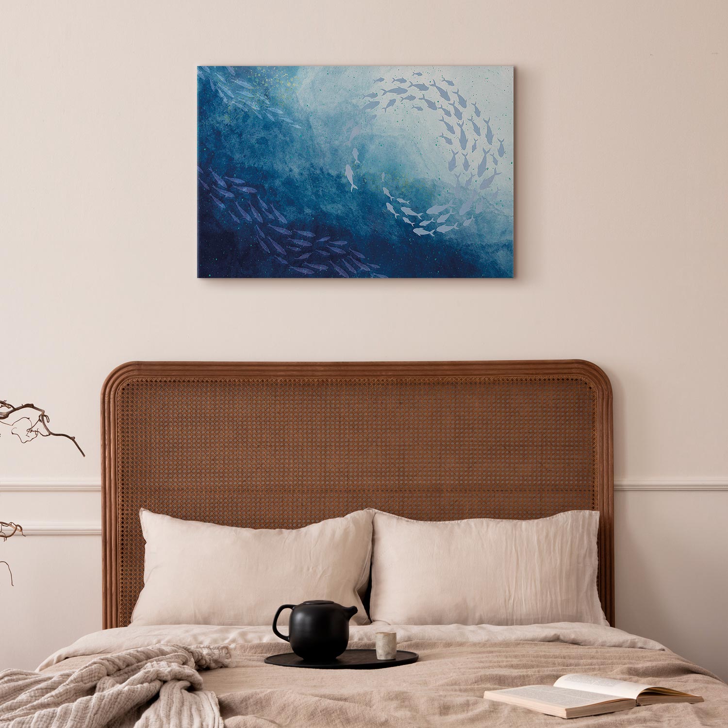 Unsere Bilder sind sicher und geruchsneutral und eignen sich daher ideal für Kinderzimmer. Die Größe wird Ihr Kind sicher beeindrucken! Bilder für Schlafzimmer sind ein echter Blickfang, genauso wie Bilder Wohnzimmer. Dekorieren Sie die Wände in Ihrem privaten Bereich mit einem Bild „Leinwandbild – Sea depths“. Wir empfehlen Bilder für Schlafzimmer , die Sie beruhigen und in eine erholsame Stimmung versetzen. Bilder aus unserer Kollektion werden Ihrem Interieur eine außergewöhnliche Atmosphäre verleihen. Unabhängig vom Raum schaffen auch Kunst Bilder eine gemütliche Atmosphäre für die Gäste. Massive Holzrahmen unterstreichen den einzigartigen Charakter der Schlafzimmerbilder, und ein schneller und sicherer Versand ist ein weiterer Vorteil, der für diese Wanddekorationen spricht Leinwandbilder sind in fünf Varianten erhältlich, sodass jeder Kunde die perfekte Option für seine Bedürfnisse findet.Die Variante auf Strukturleinwand (Standard) ist eine universelle Dekoration, die das Haushaltsbudget nicht belastet.Für Liebhaber edler Materialien ist ein Druck auf italienischer Leinwand aus 100 % Baumwolle die ideale Wahl.Und für Fans der Malerei? Hier überzeugt die außergewöhnliche Premium-Print-Technik – ein Bild, das auf Strukturleinwand gedruckt und von Hand mit einer Schicht transparenten Gels überzogen wird, die die Pinselstriche eines Künstlers imitiert – ein „wie gemalt“-Effekt, aber zu einem günstigeren Preis.Die Variante im soliden Holzrahmen des Typs American Box mit Tiefeneffekt (zwei Rahmenfarben zur Auswahl, Motiv auf Strukturleinwand gedruckt) bietet eine klassische Lösung in neuer Form.Das Akustikbild (Druck auf Strukturleinwand mit einer zusätzlichen Schicht schallabsorbierendem Schaumstoff) ist dagegen ein Volltreffer für alle, die Ästhetik mit Funktionalität verbinden möchten.Zwar sind die beiden letzten Optionen nur für bestimmte Größen von einteiligen Bildern verfügbar, doch bei allen Varianten legen wir GRATIS die erforderliche Anzahl an Haken und Nägeln zur Montage bei.