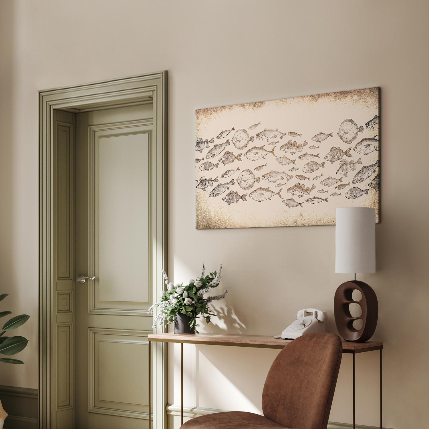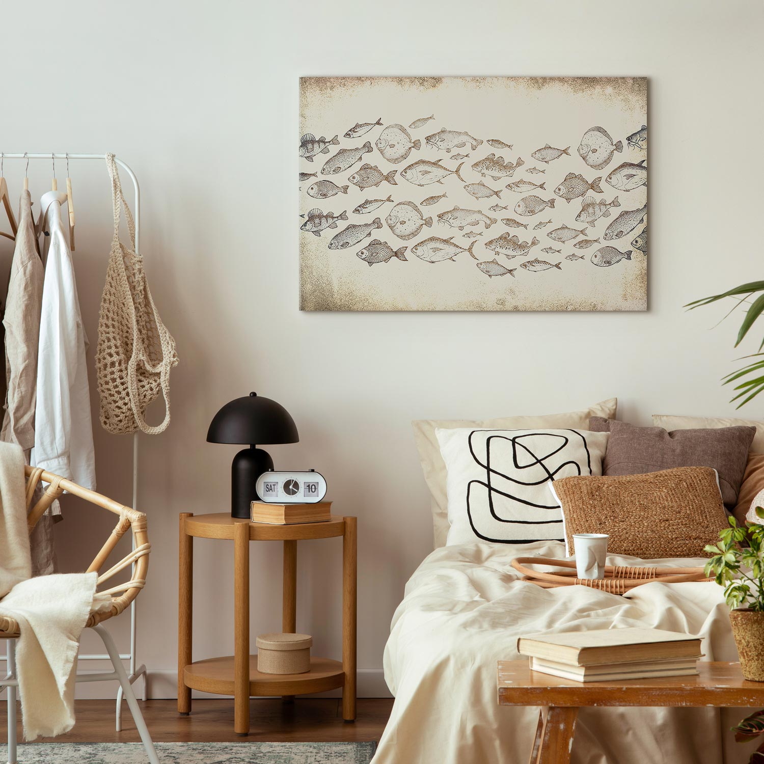 Unsere Bilder sind sicher und geruchsneutral und eignen sich daher ideal für Kinderzimmer. Die Größe wird Ihr Kind sicher beeindrucken! Bilder für Schlafzimmer sind ein echter Blickfang, genauso wie Bilder Wohnzimmer. Dekorieren Sie die Wände in Ihrem privaten Bereich mit einem Bild „Leinwandbild – Subtle fish“. Wir empfehlen Bilder für Schlafzimmer , die Sie beruhigen und in eine erholsame Stimmung versetzen. Bilder aus unserer Kollektion werden Ihrem Interieur eine außergewöhnliche Atmosphäre verleihen. Unabhängig vom Raum schaffen auch Kunst Bilder eine gemütliche Atmosphäre für die Gäste. Massive Holzrahmen unterstreichen den einzigartigen Charakter der Schlafzimmerbilder, und ein schneller und sicherer Versand ist ein weiterer Vorteil, der für diese Wanddekorationen spricht Leinwandbilder sind in fünf Varianten erhältlich, sodass jeder Kunde die perfekte Option für seine Bedürfnisse findet.Die Variante auf Strukturleinwand (Standard) ist eine universelle Dekoration, die das Haushaltsbudget nicht belastet.Für Liebhaber edler Materialien ist ein Druck auf italienischer Leinwand aus 100 % Baumwolle die ideale Wahl.Und für Fans der Malerei? Hier überzeugt die außergewöhnliche Premium-Print-Technik – ein Bild, das auf Strukturleinwand gedruckt und von Hand mit einer Schicht transparenten Gels überzogen wird, die die Pinselstriche eines Künstlers imitiert – ein „wie gemalt“-Effekt, aber zu einem günstigeren Preis.Die Variante im soliden Holzrahmen des Typs American Box mit Tiefeneffekt (zwei Rahmenfarben zur Auswahl, Motiv auf Strukturleinwand gedruckt) bietet eine klassische Lösung in neuer Form.Das Akustikbild (Druck auf Strukturleinwand mit einer zusätzlichen Schicht schallabsorbierendem Schaumstoff) ist dagegen ein Volltreffer für alle, die Ästhetik mit Funktionalität verbinden möchten.Zwar sind die beiden letzten Optionen nur für bestimmte Größen von einteiligen Bildern verfügbar, doch bei allen Varianten legen wir GRATIS die erforderliche Anzahl an Haken und Nägeln zur Montage bei.