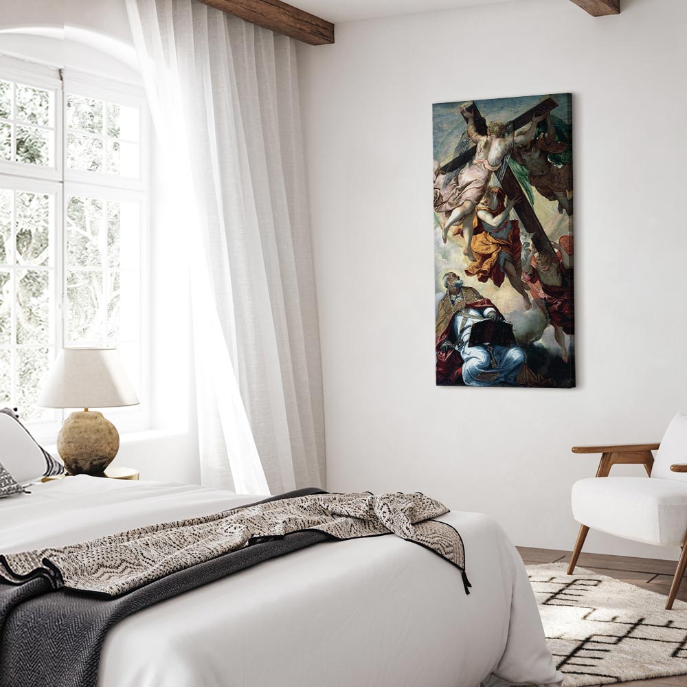 Unsere Bilder sind sicher und geruchsneutral und eignen sich daher ideal für Kinderzimmer. Die Größe wird Ihr Kind sicher beeindrucken! Bilder für Schlafzimmer sind ein echter Blickfang, genauso wie Bilder Wohnzimmer. Dekorieren Sie die Wände in Ihrem privaten Bereich mit einem Bild „Leinwandbild – Tintoretto – Apparition of the Cross to St. Peter“. Wir empfehlen Bilder für Schlafzimmer , die Sie beruhigen und in eine erholsame Stimmung versetzen. Bilder aus unserer Kollektion werden Ihrem Interieur eine außergewöhnliche Atmosphäre verleihen. Unabhängig vom Raum schaffen auch Kunst Bilder eine gemütliche Atmosphäre für die Gäste. Massive Holzrahmen unterstreichen den einzigartigen Charakter der Schlafzimmerbilder, und ein schneller und sicherer Versand ist ein weiterer Vorteil, der für diese Wanddekorationen spricht Leinwandbilder sind in fünf Varianten erhältlich, sodass jeder Kunde die perfekte Option für seine Bedürfnisse findet.Die Variante auf Strukturleinwand (Standard) ist eine universelle Dekoration, die das Haushaltsbudget nicht belastet.Für Liebhaber edler Materialien ist ein Druck auf italienischer Leinwand aus 100 % Baumwolle die ideale Wahl.Und für Fans der Malerei? Hier überzeugt die außergewöhnliche Premium-Print-Technik – ein Bild, das auf Strukturleinwand gedruckt und von Hand mit einer Schicht transparenten Gels überzogen wird, die die Pinselstriche eines Künstlers imitiert – ein „wie gemalt“-Effekt, aber zu einem günstigeren Preis.Die Variante im soliden Holzrahmen des Typs American Box mit Tiefeneffekt (zwei Rahmenfarben zur Auswahl, Motiv auf Strukturleinwand gedruckt) bietet eine klassische Lösung in neuer Form.Das Akustikbild (Druck auf Strukturleinwand mit einer zusätzlichen Schicht schallabsorbierendem Schaumstoff) ist dagegen ein Volltreffer für alle, die Ästhetik mit Funktionalität verbinden möchten.Zwar sind die beiden letzten Optionen nur für bestimmte Größen von einteiligen Bildern verfügbar, doch bei allen Varianten legen wir GRATIS die erforderliche Anzahl an Haken und Nägeln zur Montage bei.