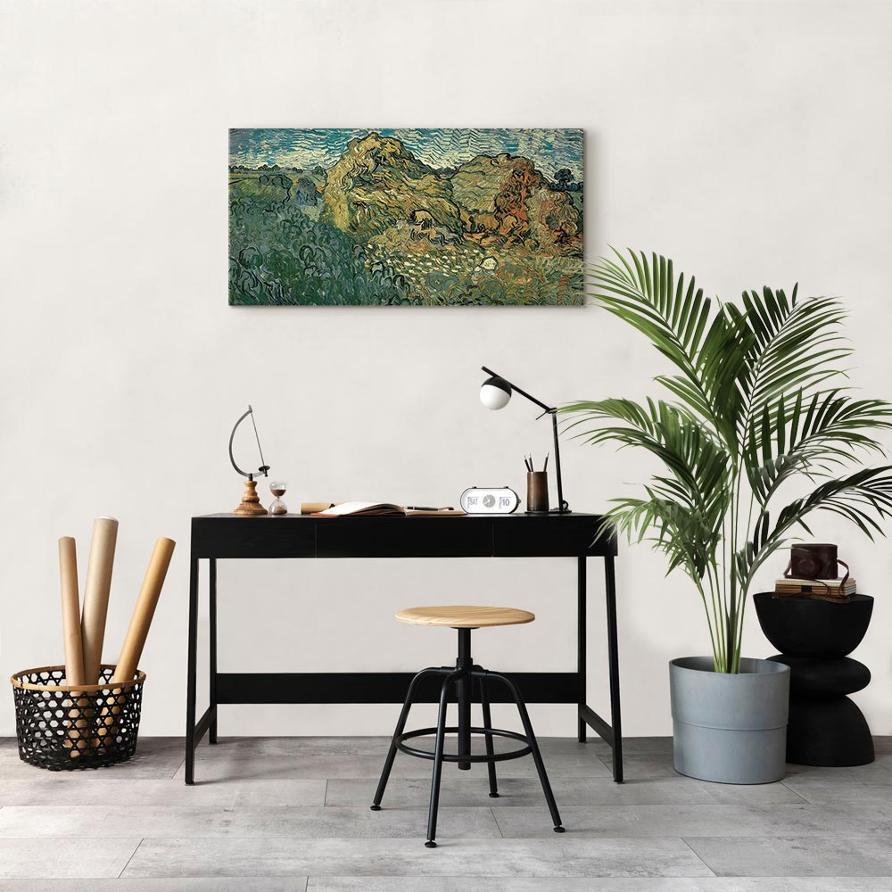 Leinwandbild - Vincent Van Gogh – Field with Wheat StacksLeinwandbild – Vincent Van Gogh – Field with Wheat Stacks