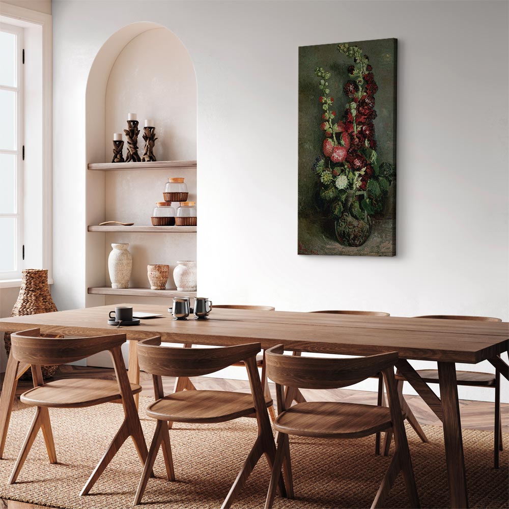 Unsere Bilder sind sicher und geruchsneutral und eignen sich daher ideal für Kinderzimmer. Die Größe wird Ihr Kind sicher beeindrucken! Bilder für Schlafzimmer sind ein echter Blickfang, genauso wie Bilder Wohnzimmer. Dekorieren Sie die Wände in Ihrem privaten Bereich mit einem Bild „Leinwandbild – Vincent Van Gogh – Vase of Hollyhocks“. Wir empfehlen Bilder für Schlafzimmer , die Sie beruhigen und in eine erholsame Stimmung versetzen. Bilder aus unserer Kollektion werden Ihrem Interieur eine außergewöhnliche Atmosphäre verleihen. Unabhängig vom Raum schaffen auch Kunst Bilder eine gemütliche Atmosphäre für die Gäste. Massive Holzrahmen unterstreichen den einzigartigen Charakter der Schlafzimmerbilder, und ein schneller und sicherer Versand ist ein weiterer Vorteil, der für diese Wanddekorationen spricht Leinwandbilder sind in fünf Varianten erhältlich, sodass jeder Kunde die perfekte Option für seine Bedürfnisse findet.Die Variante auf Strukturleinwand (Standard) ist eine universelle Dekoration, die das Haushaltsbudget nicht belastet.Für Liebhaber edler Materialien ist ein Druck auf italienischer Leinwand aus 100 % Baumwolle die ideale Wahl.Und für Fans der Malerei? Hier überzeugt die außergewöhnliche Premium-Print-Technik – ein Bild, das auf Strukturleinwand gedruckt und von Hand mit einer Schicht transparenten Gels überzogen wird, die die Pinselstriche eines Künstlers imitiert – ein „wie gemalt“-Effekt, aber zu einem günstigeren Preis.Die Variante im soliden Holzrahmen des Typs American Box mit Tiefeneffekt (zwei Rahmenfarben zur Auswahl, Motiv auf Strukturleinwand gedruckt) bietet eine klassische Lösung in neuer Form.Das Akustikbild (Druck auf Strukturleinwand mit einer zusätzlichen Schicht schallabsorbierendem Schaumstoff) ist dagegen ein Volltreffer für alle, die Ästhetik mit Funktionalität verbinden möchten.Zwar sind die beiden letzten Optionen nur für bestimmte Größen von einteiligen Bildern verfügbar, doch bei allen Varianten legen wir GRATIS die erforderliche Anzahl an Haken und Nägeln zur Montage bei.