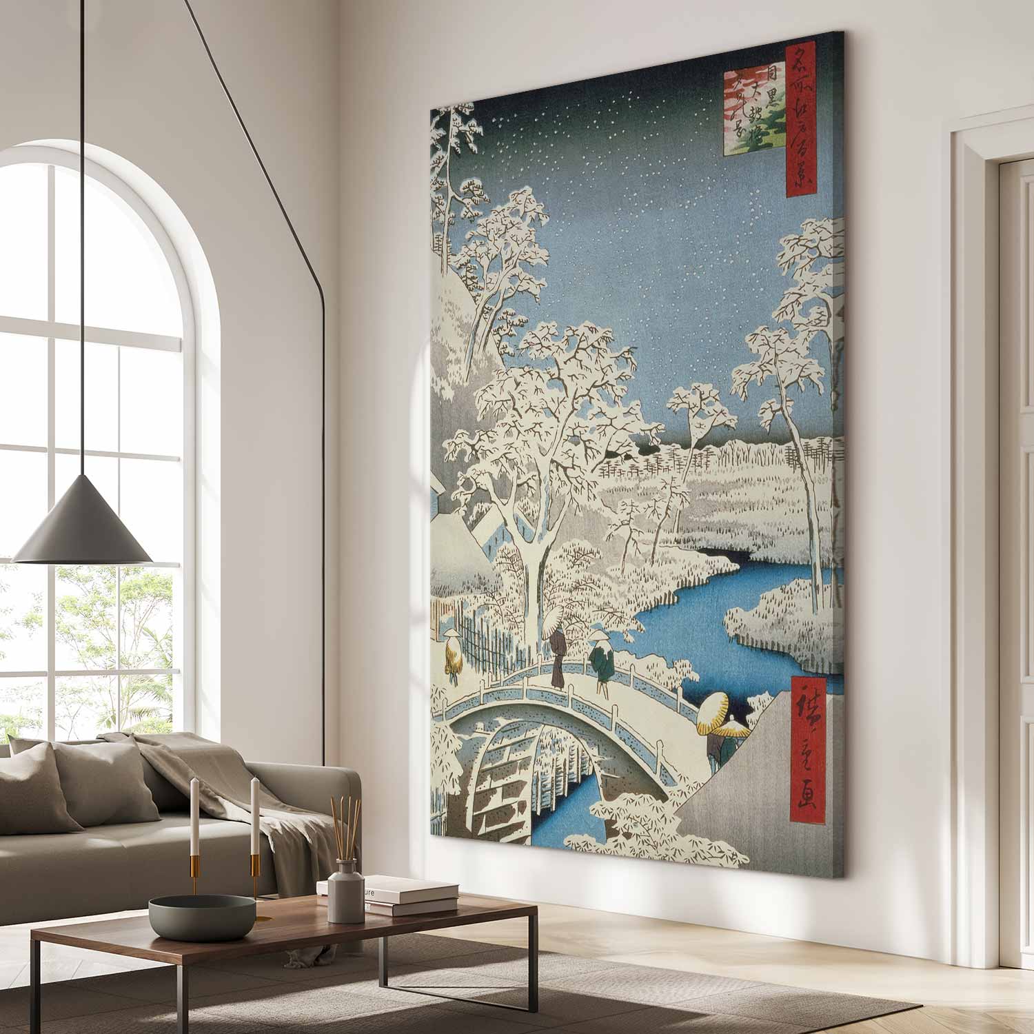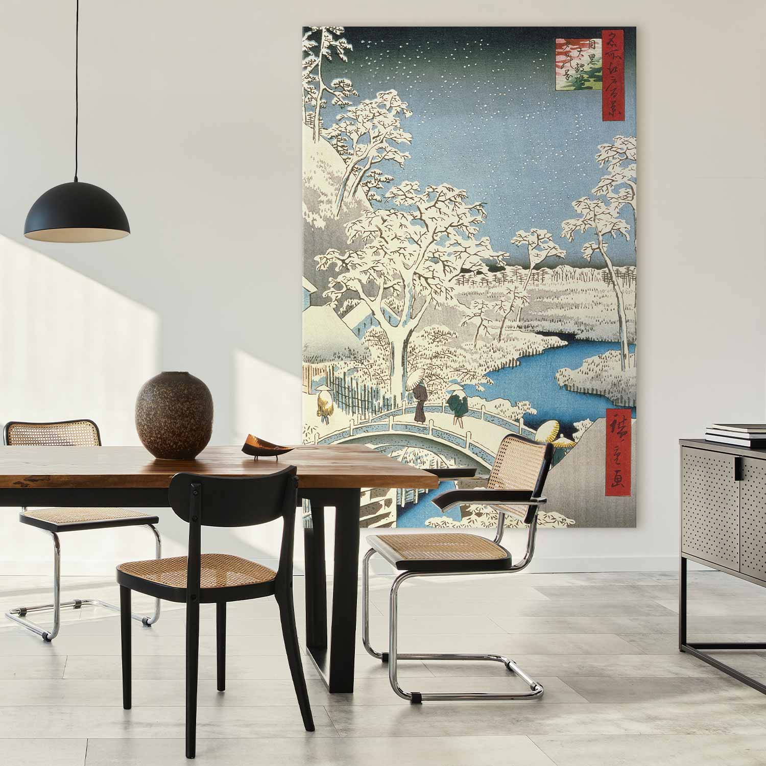 Interessieren Sie sich für große Leinwandbilder für Ihr Wohnzimmer? Wissen Sie nicht, wie Sie die Wandflächen in Ihrem Büro gestalten sollen? Oder lieben Sie einfach DIY-Projekte? Wenn ja, wird unser einzigartiger „Wandbild XXL – Utagawa Hiroshige – Drum bridge and Setting Sun Hill at Meguro“ Ihre Erwartungen erfüllen. XXL-Leinwandbilder eignen sich ideal als Blickfang in geräumigen Räumen oder Innenräumen mit hohen Decken, doch die große Auswahl an Größen macht sie auch zur Antwort für alle, die dekorative Elemente gern selbst erstellen und montieren. XXL-Bilder sind perfekt für alle Räume, in denen Ästhetik und Funktionalität Hand in Hand gehen. Dank der leichten Reinigung ist das XXL-Wandbild eine ausgezeichnete Wahl für stark frequentierte Orte wie Cafés oder Konferenzräume. In unserer umfangreichen Kollektion finden sowohl Liebhaber moderner Abstraktionen in ungewöhnlichen Farben, Panoramen der schönsten Metropolen als auch Fans klassischer Reproduktionen, Stillleben oder atemberaubender Landschaften ihr Traum-Motiv.